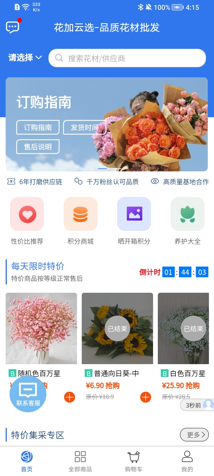 花加云选是一款非常优质的鲜花采购软件你想要的鲜花在这里都可以找到,为您挑选品质花材,花加云选app直采发货,品质源头把控,优质花材平价销售,2000余种花材,提供高效、便捷的花材供应服务。海量不同种类鲜花产品十分丰富,随时手机上就可以查看详细的内容,价格透明公平,资源丰富多样,可以很好的满足用户需求,喜欢的快来下载吧。