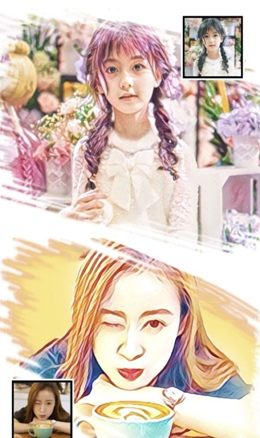 3.后续的添加效果也有非常精美的相框模式,基本的相机对应的是非常完整的卡通模式,对相机拍摄的图片进行描边和更新色光,似乎有更好的内容传输。
