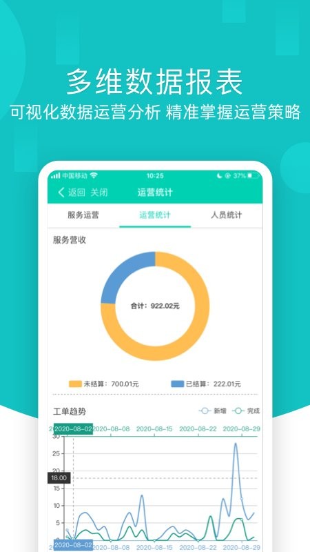 提高员工协同效率,实现秒级服务响应工单管理:工单全流程在线可视化,实现服务工单闭环管理,实现工单在线审核结算与客户的自动回访