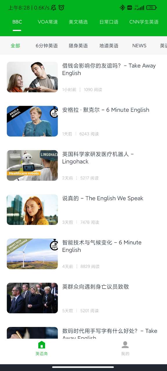 2、学轻松英语app中素哟英语文章实时更新给用户,让用户可以获取所有文章内容的最新信息,有需要的可以选择自己的学习阅读 .