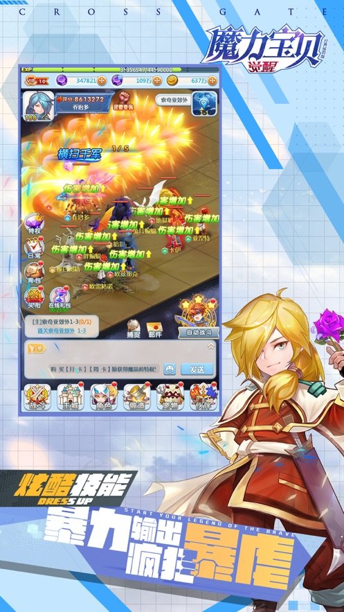 3、游戏的战斗可以自动也可以手动,回合战斗模式很简单,你只要提升战斗力就好了。