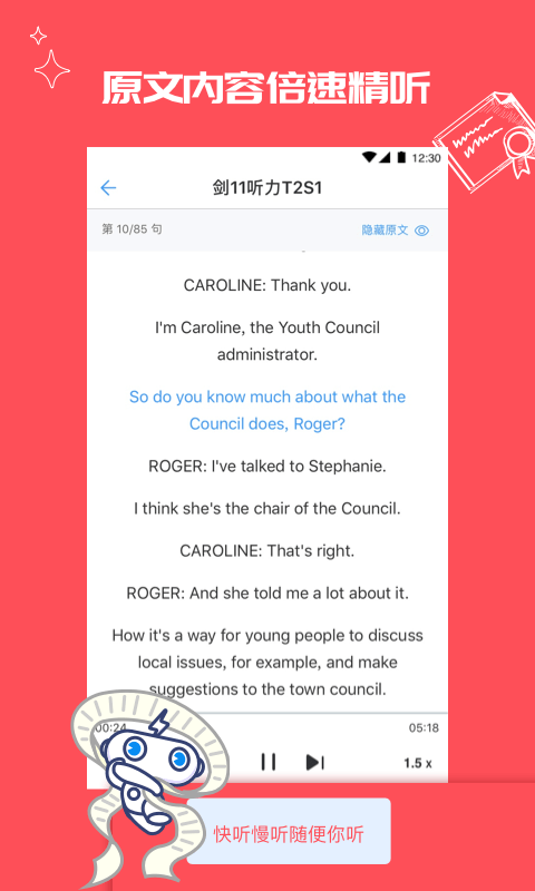 3. 提供题目收藏,原文同步,后台播放等功能,让你学习更轻松,更高效。