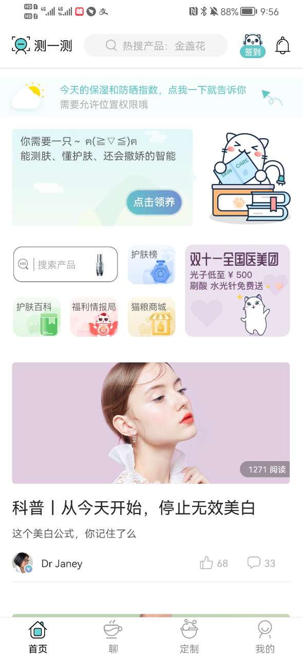 5、拍一拍就能测肤质!我的得分是89,超过全国83%的人。你呢?