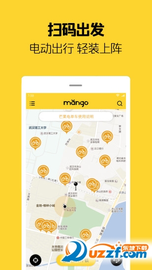 1、使用芒果电单车App扫描车身二维码即可开锁,操作简单易上手。