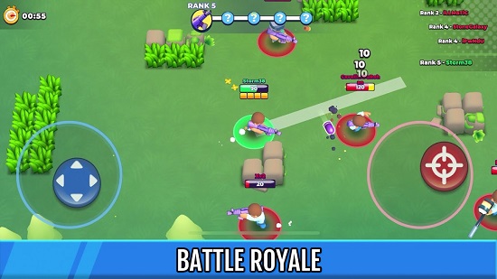 简单的操作,画面中有两个虚拟的摇杆,一个是方向摇杆一个则是瞄准和射击摇杆,通过控制不同摇杆灵活走位射击干掉敌人。