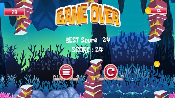 3、海里有着很多的海藻生物和复杂的情形,在游动的同时规避这些障碍
