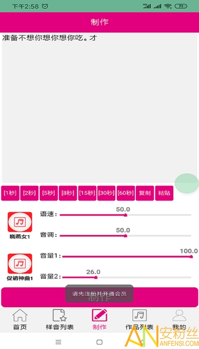 输入文字就能转语音,让你轻松制作各种广告词,还能够调节音色;