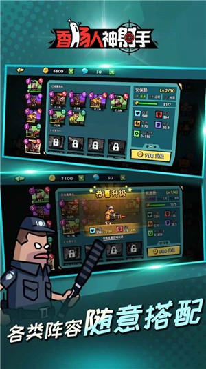 丰富的闯关战斗任务等待你的参与,可以自由指挥不同的香肠人参与战斗中,每个香肠人的特点都不同,适合在不同的任务中进行战斗,各种烈性的敌人,以合适的战术来应对,努力的战斗闯关,获取更多的奖励,提升自己的战斗能力,香肠人的培养,可以解锁更多的技能!