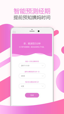 1、 女性可进行月经期管理 :在大姨妈来临前的温馨提醒,预测排卵期/安全期,易孕期、排卵日,您都需要。