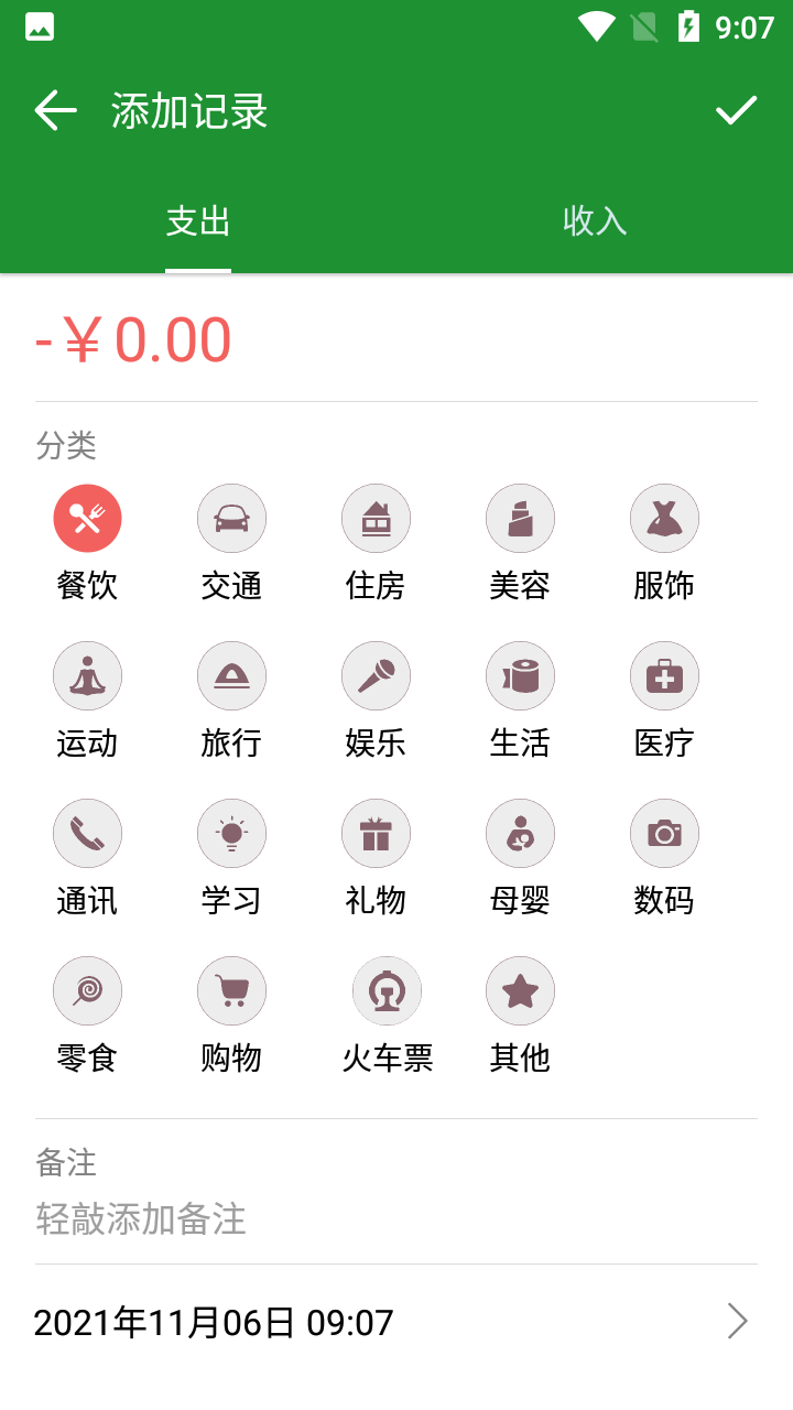 另一种是使用记账APP进行分类。一般App都会内置丰富的开销分类,只需要在记账的时候点选一下就OK了