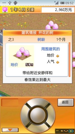 当某个人员的技术能力已到100时,请及时将这些人员转职,用来开发城市中新的建筑功能。这样你可以很快获得更有价值的功能建筑,比如农场,公园,棒球场,汽车售卖店,影院等。游戏中每年会对你的某个商业建筑进行评比,如果地产的价值够高,那么可以获得好名次和金钱奖励。另外在游戏中不时的开办一些活动,比如发动居民像早起的鸟儿一样勤奋工作,以及宠物爱心之类的