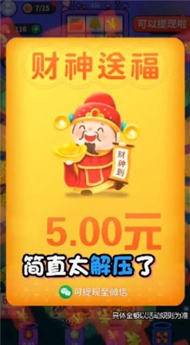 可以提现,多样消除挑战关卡玩家可以自由选择进行挑战,更好的完成不同消除任务可以让你获得更多红包,多样的完成丰厚的福利玩家可以不断挑战领取,所有获得的红包均可以自由进行提现,掌握更多消除技巧解锁更多消除道具都能让你获得更高的分数兑换更多的奖励,丰富的玩法自由选择体验。