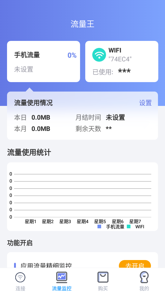 3、能够为用户统计出了本日和本月的流量使用情况;