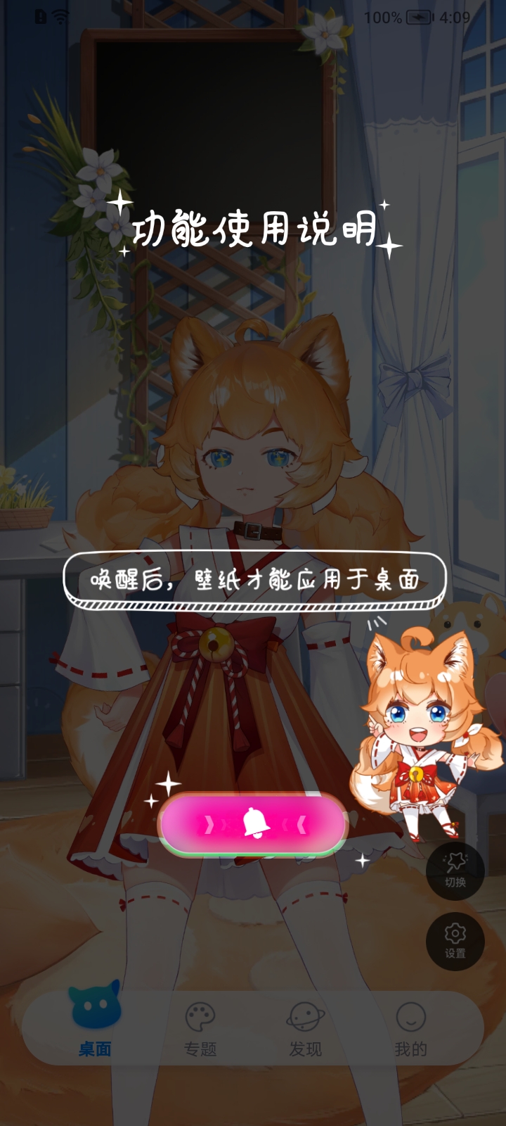 存储权限说明:超次元桌面需要获得存储权限存储视频或图片,因此存储权限是超次元桌面App运行的必要权限;如果选择“禁止且不再询问”,App将无法继续申请权限,可以在“设置-权限设置”中为超次元桌面开启存储权限。麦克风权限说明:超次元桌面需要麦克风权限来让角色根据系统声音做出反应,请放心,超次元桌面不会存储、分析或上传任何您系统播放的声音,详细条款请参考《隐私条款》。如果在启动时未授予App麦克风权限,可以在“设置-权限设置”中为超次元桌面开启麦克风权限。