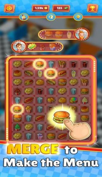 客人们仍然有很多订单要做,用这些收入来修复破旧的餐厅,游戏中有许多道具可以用来合成自己的食物,制作精美的汉堡、薯条等。每个客户都有一个定制订单,所以,请尽快与他们见面,以获得最大的影响力。
