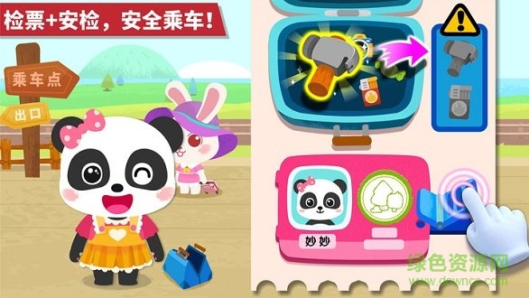 掌握乘车知识,乘客们要上车啦,宝宝帮忙检票、找出行李箱中的危险物品,引导乘客排队,安全乘车哦;