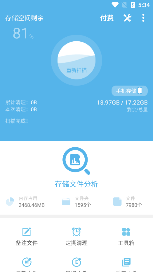 存储空间清理这款软件没有任何广告,所提供的高级付费功能也只有3.5元,一瓶可乐而已,比较实在。
