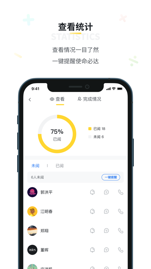 老师发布班级通知,家长无需文字回复,点“阅”即可,避免刷屏现象。对于没有查看的家长,老师可以使用免费短信和电话一键提醒,确保通知送达。