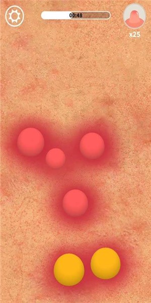 1.魔性又减压的小游戏,通过指尖清楚屏幕来挤压痘痘来完成关卡任务要求。