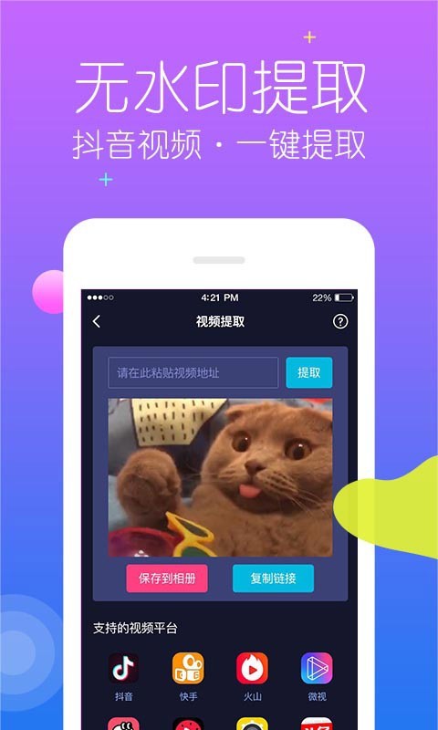 3:短视频去水印,复制分享链接,打开我们的APP粘贴该链接就可以去除水印