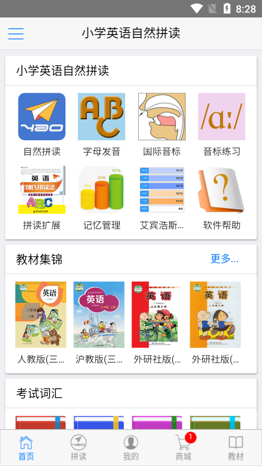 小学英语自然拼读软件是一款帮助小朋友记住会拼写英语单词的一款软件,有英语词库也有现在的英语教材,帮助小朋友更好的理解,还有元音和辅音的发音和解释能帮助小朋友理解记住单词,没有任何限制因素。小学英语自然拼读软件app还为用户提供了声音服务,有效帮助用户可以更详细的知道单词的发音信息,并可以高效提升自己的口语表达能力。