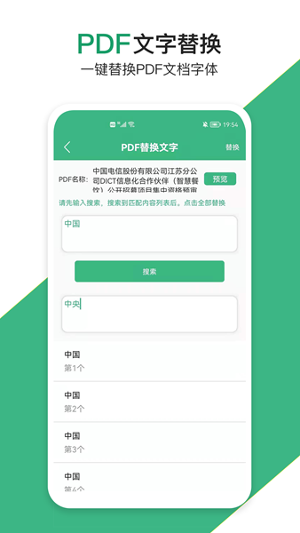 4.PDF替换文字,选择pdf文件后。输入需要替换的文字。查询到了以后。输入想换的文字。进行替换,目前仅支持3种文字字体Arial.ttf和DroidSansFallback.ttf,宋体