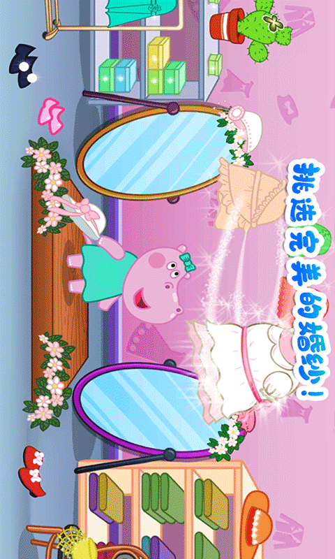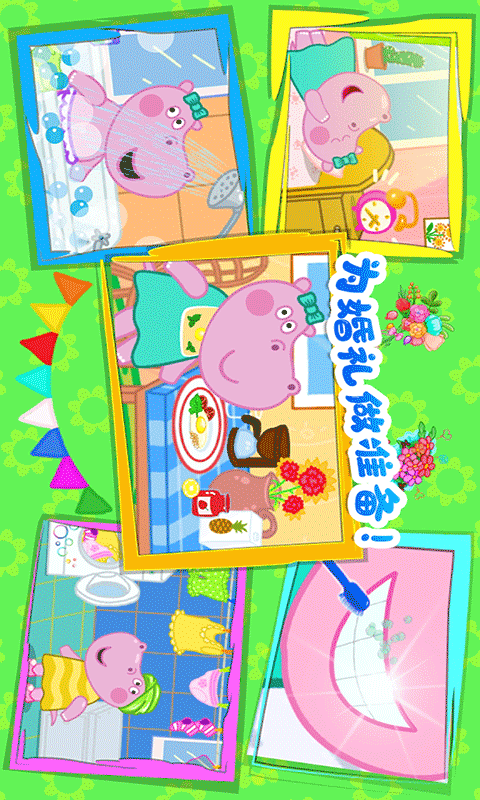 1、在游戏中,玩家们会非常忙碌地为佩奇举行婚礼,卡通人物,简单的操作;