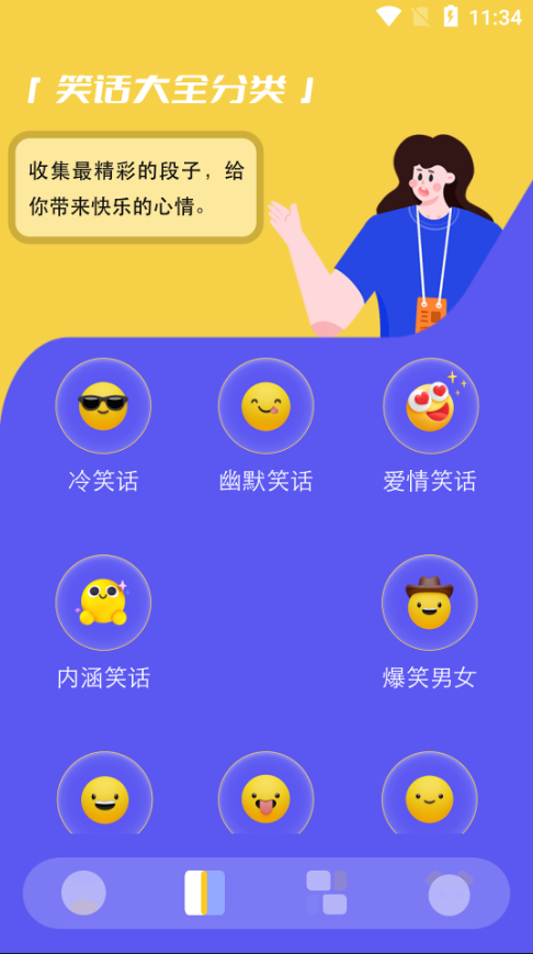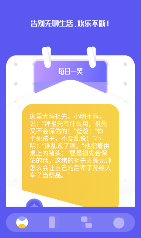 根据自己的喜好进行了解不同的笑话段子,可以让你随时在线开怀一笑。