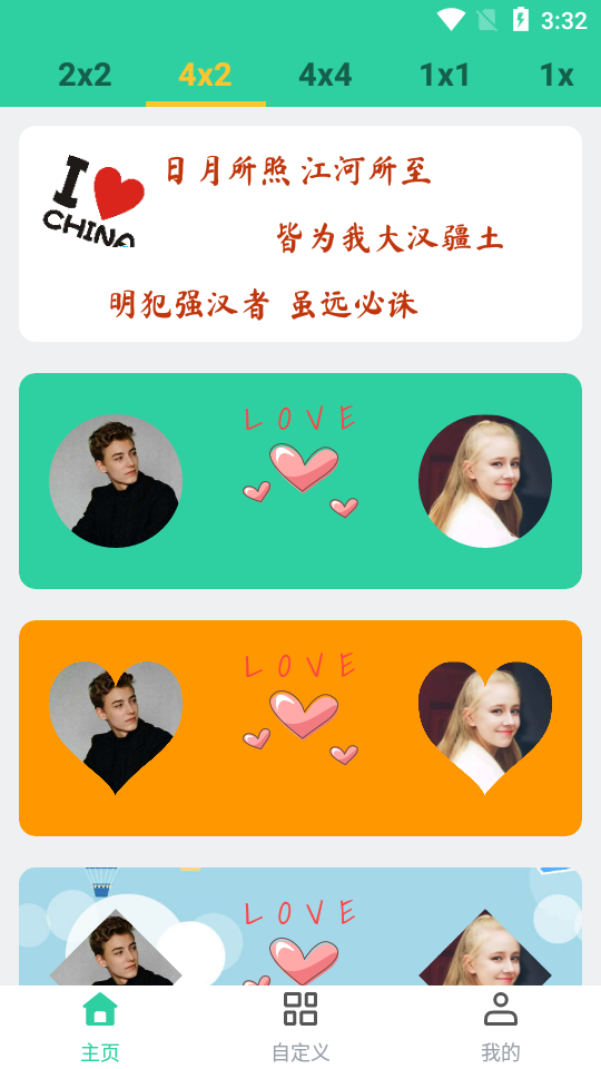 -支持最全尺寸样式:2*2,4*2,4*4,1*1,1*2,2*3,3*2,4*1等。