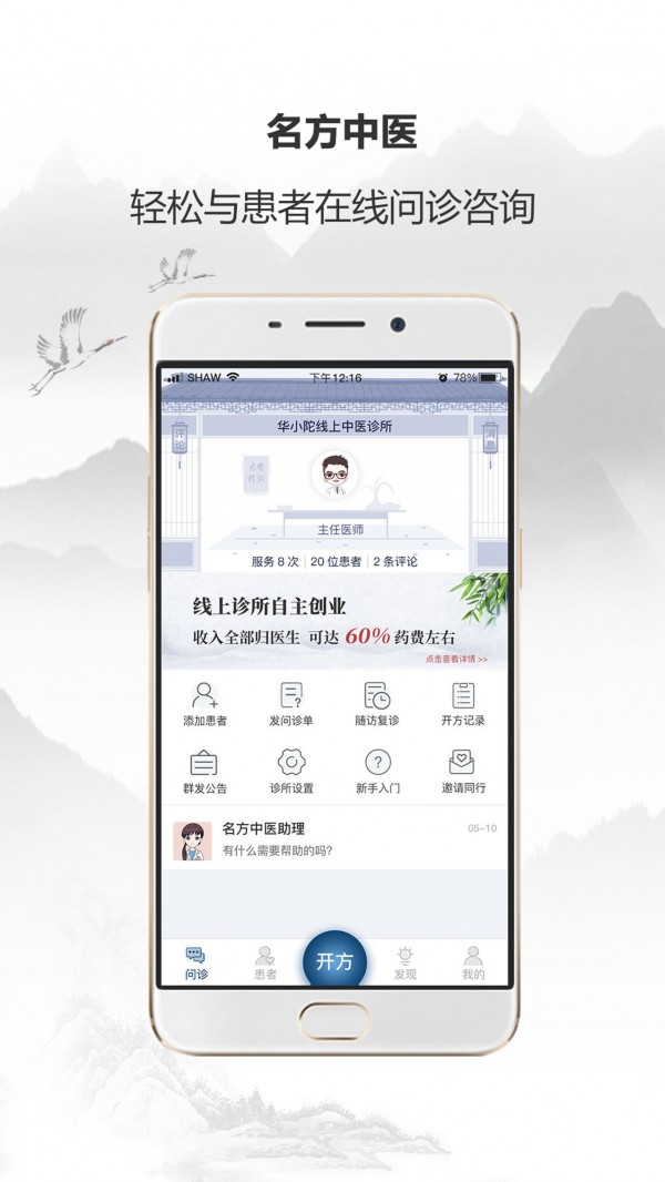 名方中医app是专注于中医临床疗效的医疗在线服务应用,入驻名方中医app的中医可通过线上平台远程会诊,增加经验,同时还能通过名方中医app跟名师学习医术。