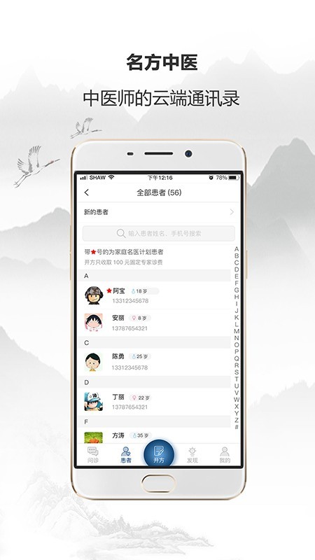 名方中医app是一款中医医疗服务平台,平台拥有丰富的优秀中医名医,可以在线问诊,可以智能开方,可以帮助用户更轻松看中医,远程复诊和对患者进行慢病管理的在线服务产品。名方中医医生集团有限公司是一个由全国中医优秀临床人才组成的、以追求临床疗效为目标的中医医生集团,觉得不错的朋友欢迎前来下载使用。