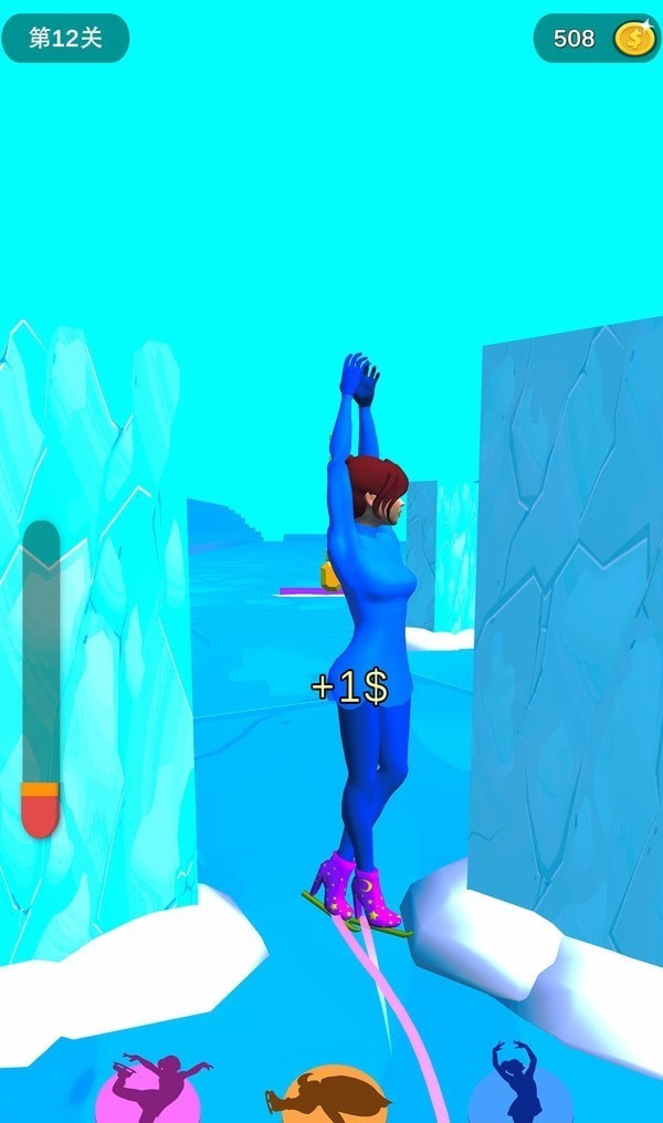 1、经典刺激的滑冰场景,让你在游戏中可以尽情的展现自我,考验反应和手速的时刻到了,千万不要撞到障碍物,失败关卡会掉落;