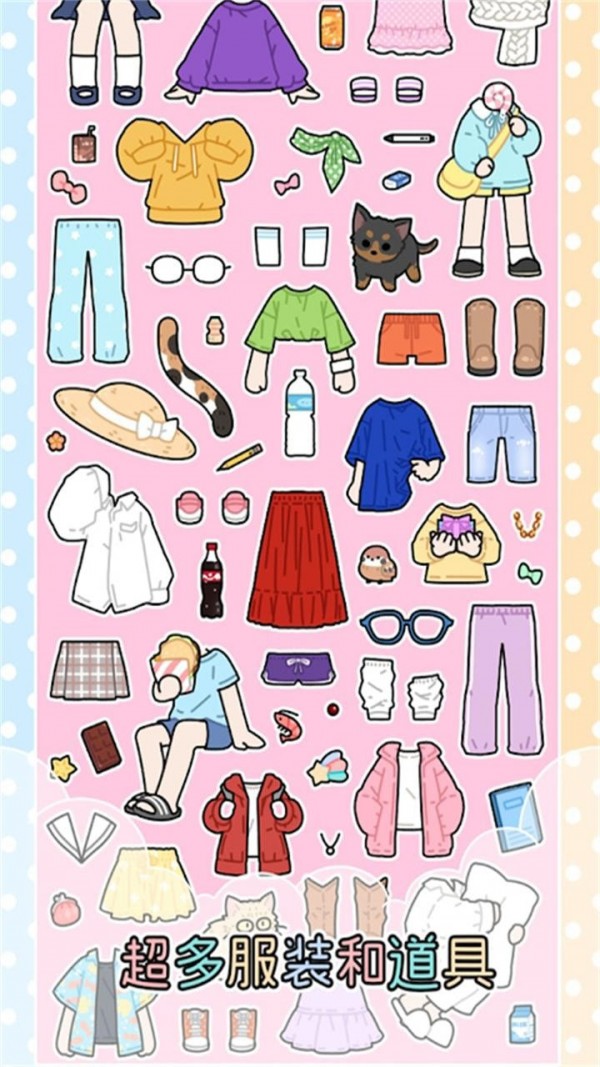 -用大量的衣服、物品、语音泡泡和字母装饰你可爱的女孩。