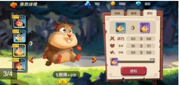 2、收集游戏中的各种资源,玩家可以来强化升级这里的小动物,助你更轻松的赢下胜利