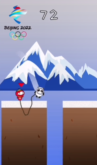 玩家只需要长按屏幕就可以控制冰墩墩或者雪容融的跳跃,不断前进就可以获得更多的分数。