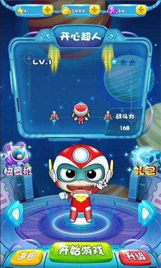 如果你看过开心宝贝,那么对游戏中的人物绝不会陌生,游戏从人物性格到建筑场景,都延续了《开心宝贝》的精华内容,精心建模而成.游戏共8集24幕,关卡难度逐步上升,每一幕都由不同的场景、故事内容组成,火爆的视效、刺激的战斗、爽快的操作体验,使在玩家拯救星星球的过程中身临其境."开心超人来啦",熟悉的动画片人物,玩出不一样的味道.