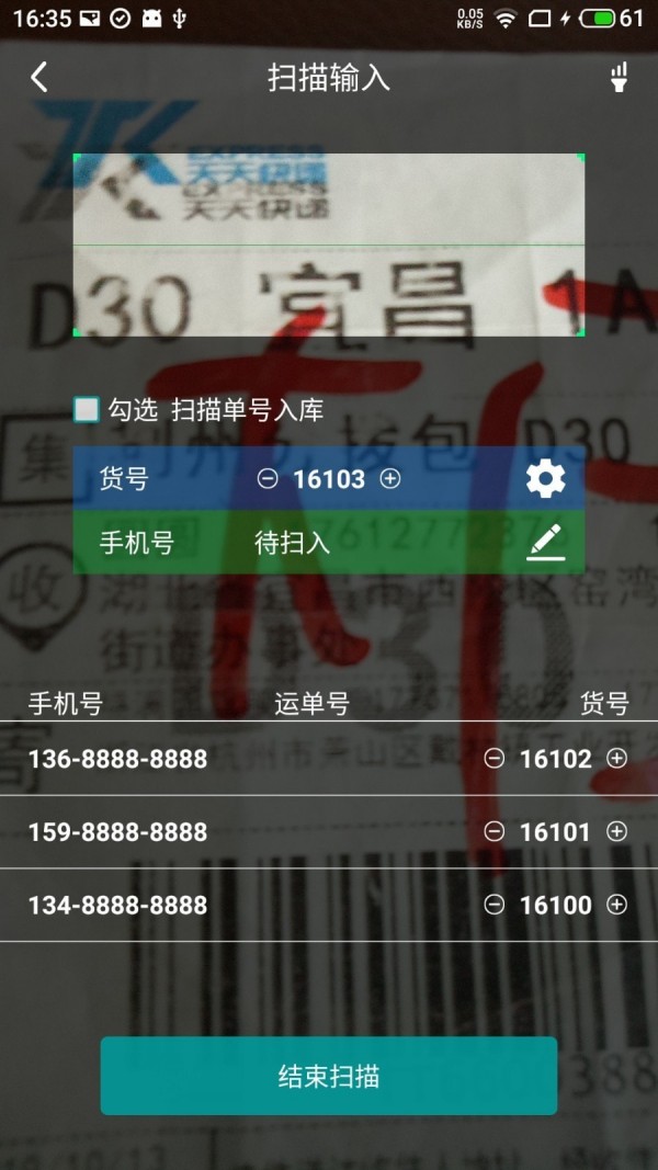 3、支持库存管理,扫描条码入库、扫描条码出库、库存统计等,到件时扫描入库,取件时扫描出库,避免快件丢失;