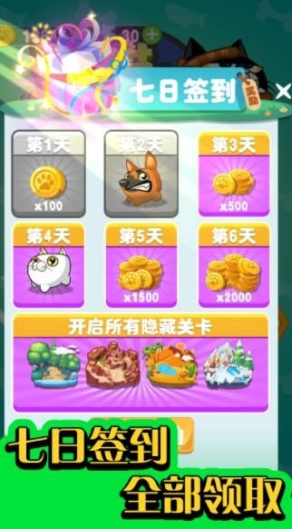 2、游戏每一个关卡都极具挑战性,各种冒险副本关卡等你来太挑战,闯关就能免费获得各种奖励,超多福利等你来上线领取。