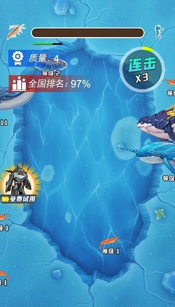 合成神龙鲨鱼是一款大鱼吃小鱼的休闲小游戏,两个体型较小的蝌蚪相撞即可合成变成新的物种,最终达到神龙形态的小游戏。游戏中主要元素的变化类似《召唤神龙》从小蝌蚪合成召唤成神龙,在积累中你将变得更加强大,最终成为游戏中的神龙。大鱼吃小鱼的玩法,游戏中只能吃比你弱小的鱼,遇见比你大的鱼,一定要快速逃跑才行,不要配吃掉了,不然你的游戏挑战将会失败。
