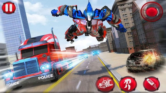 汽车人可以切换两种模式,汽车及机器人。变身汽车时移动速度变快并且可以播放音乐,前往较远的位置可以变身汽车模式!机器人模式可以跑步、跳跃,有四种攻击模式、三种武器可以随意切换使用,注意不要伤害平民,否则你会被逮捕的。