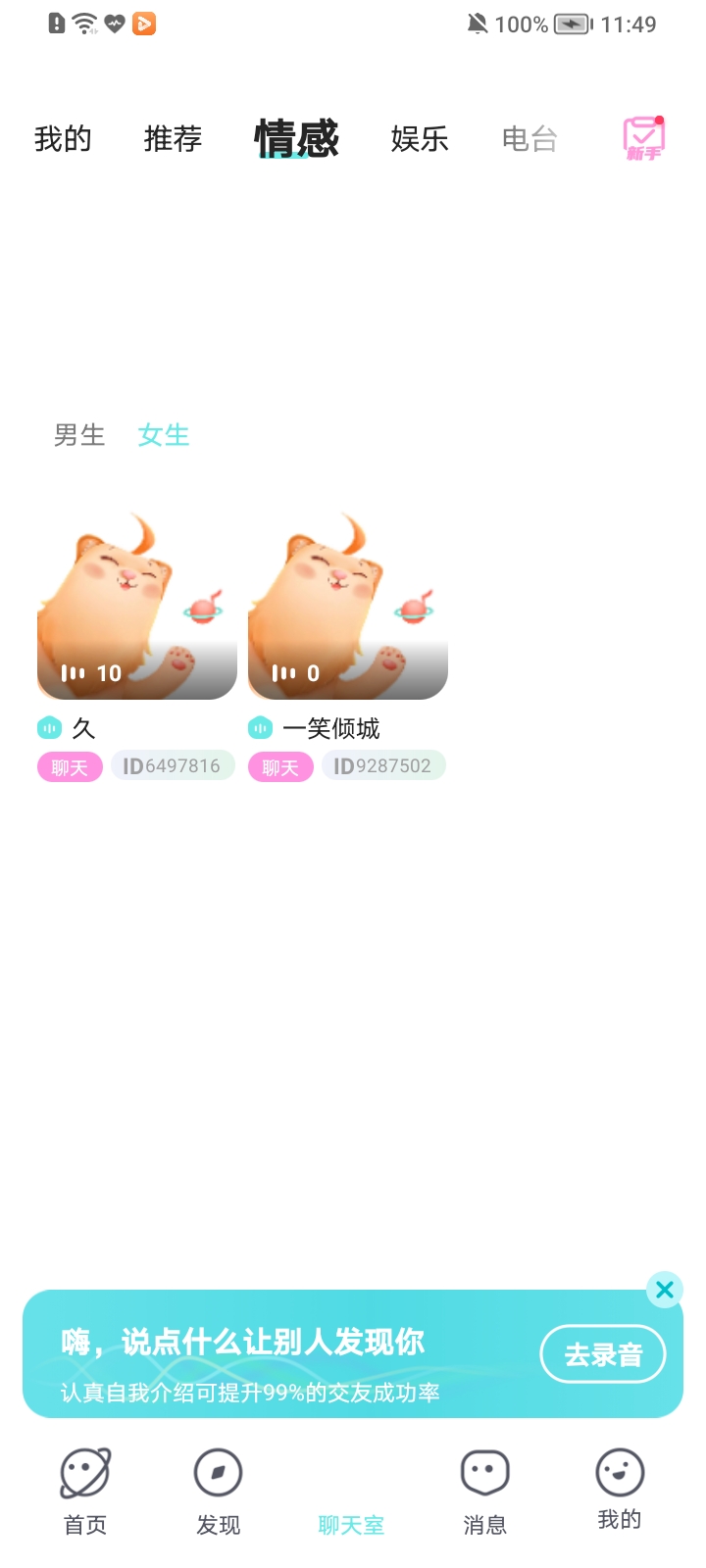在平台的语音房间中寻找爱的声音,还有很多孤独的人、有趣的人、追求真爱的人,都可以在这里留下自己的声音,等待着被发现。