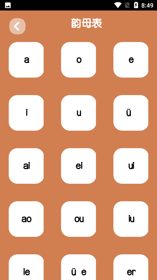 拼音是学好语文汉字的基础,因此,拼音的基础学习一定要扎实牢固;在幼升小一年级阶段,小朋友们就要开始接触拼音学习了,一年级拼音同步这款软件整合了拼音声韵母,以丰富多彩的教育形式,引导孩子学习拼音字母、拼读,培养语感,激发孩子学习兴趣,同时提高孩子的口头表达能力、注意力、模仿能力、记忆力等综合能力,帮助孩子完成由形象思维转向符号思维的过程,为孩子学习语言做好准备。是一款小朋友的拼音学习启蒙早教软件。