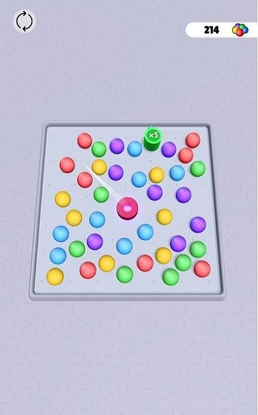 1、进入游戏后,相反方向拖拽圆环,瞄准要击打的球,放手进行弹射。
