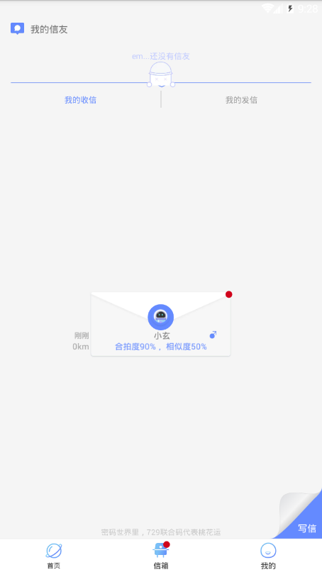 用户可以在信箱里将自己的故事和心事写下来,信箱会根据用户生命密码,将信送到懂的人手里,双方确认信友关系后,就可以进行即时聊天。