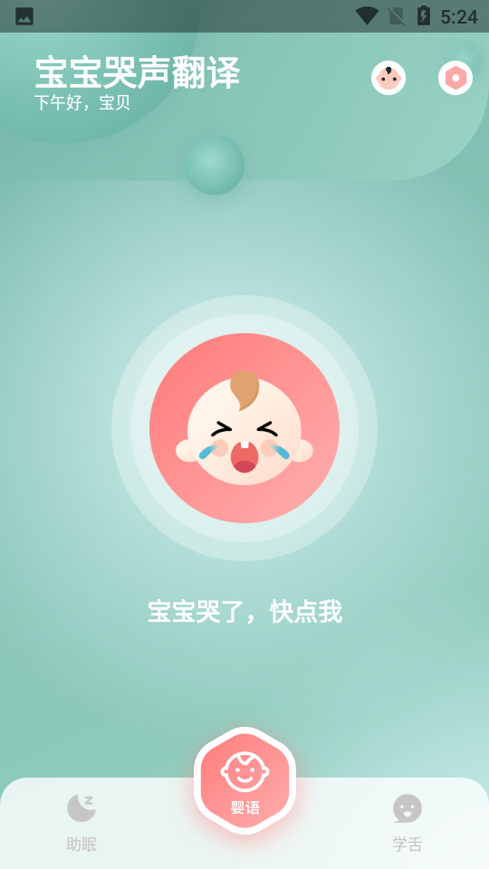 宝宝哭声翻译器是一款满足童谣安抚、提供大咖育儿经与亲子趣味互动的软件,聆听悦耳的童谣快速缓解宝宝情绪,倍增安全感。通过AI智能模型分析宝宝哭声,为父母提供更多的贴心建议及贴心好用的育儿指南,让新手爸妈掌握更多实用育儿经。还可通过趣味可爱的学舌互动与宝贝增加良好的亲子关系,是新手爸妈们必备的一款哄娃APP!
