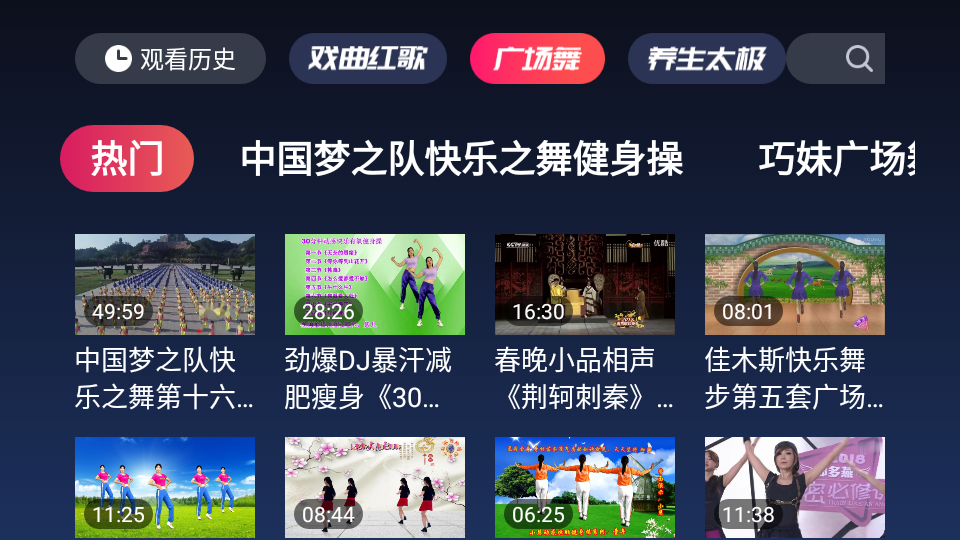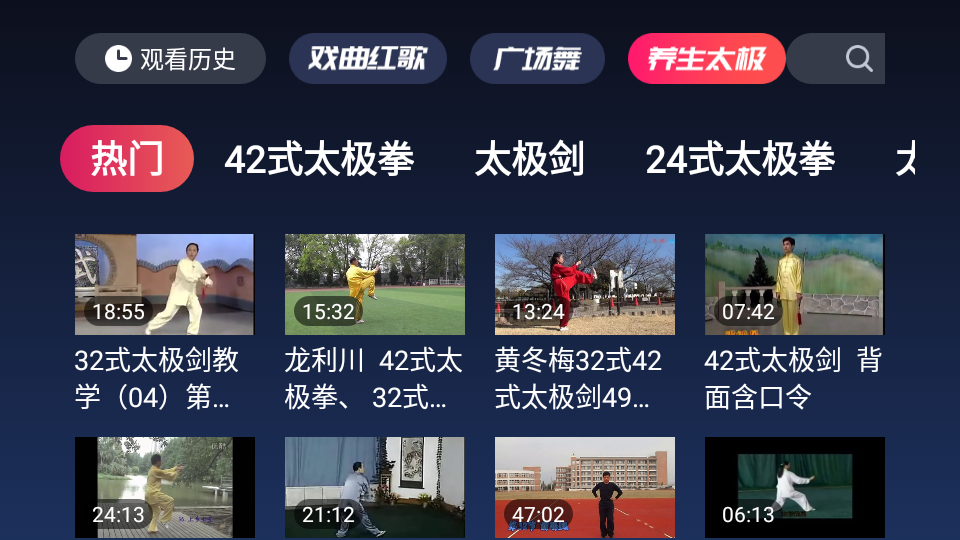 戏曲多多TV端是一款涵盖内容非常丰富的TV端戏曲播放软件,app内几乎涵盖了全国所有的戏曲种类,不仅能够观看戏曲,相声、评书、小品等等都能够找到,能够满足中老年用户的所有戏曲娱乐需要,该应用不仅有戏曲板块,还有相声、二人转、广场舞、养生太极等内容,各种娱乐有趣的视频应有尽有,是陪伴你休闲时光的好伙伴,并且视频画质高清,播放顺畅,家里有喜欢看戏曲小伙伴,快来下载使用吧。