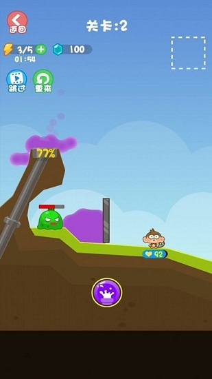 2.改变岩浆的流向,从而将怪物消灭掉,搭救可怜的被困小猴子。