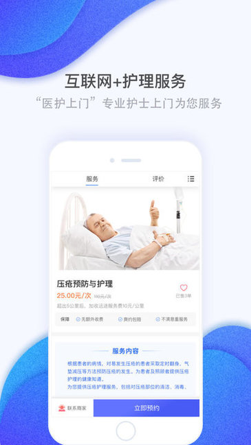 为医护工作者完成“医护上门”护理服务的首选平台,其中包括换药、静脉采血、鼻饲护理等43项日常护理项目。目前注册1万名医护工作者,通过本平台为全国近30个城市的用户提供近5万次上门护理服务。
