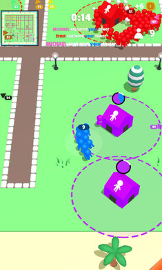玩家需要通过占领领地来挑战游戏,不断地收集自己不同颜色的人群,将他们变成自己的队友