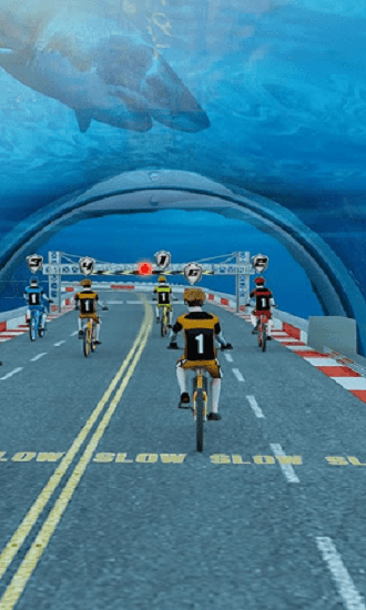 水下自行车竞赛是非常好玩的赛车手游,令人震惊的海底赛道入口已经打开,赶紧驾驶你的自行车开始这场神奇的海底之旅吧。多变的赛道非常考验玩家的操作水平,还有超多道具帮助大家超越对手成为最后的胜利者。在水里跟其他的自行车赛车手比赛,同台竞技争第一,快来用你的骚操作来秀翻全场吧,每次胜利之后可以赚取金币,然后给自己的自行车升级,越来越酷!
